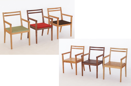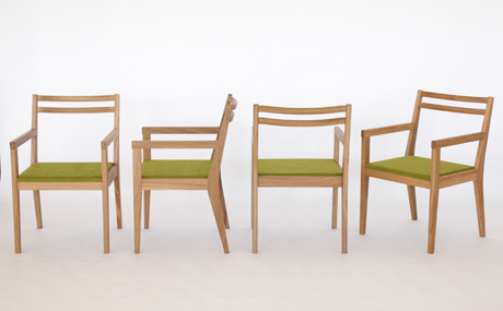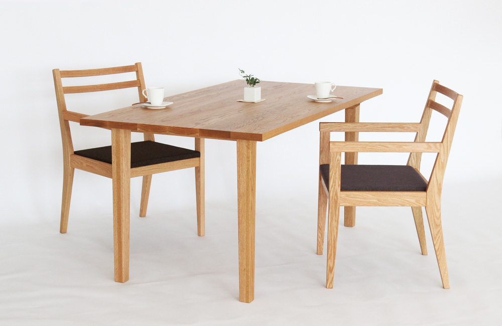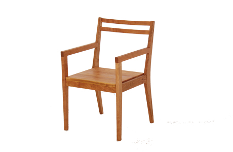 毎日使う、たくさん使うものだから、できるだけ主張しないデザインが心地よい。「シンプルチェア」よりも10cm程度幅が広いアームチェア(肘掛椅子)は、大人でもゆったりと掛けることができるサイズです。