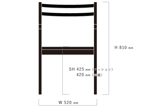 ※座面には角度がついているため、座面高は概寸となります。椅子製品は脚のカットも承ります。(+1,000円/脚)
