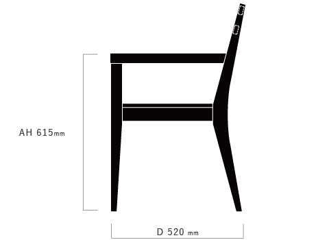 幅広のダイニングチェアはどうしても全体のボリュームが大きく、重たくなりますが、アームチェアは線で構成されたシルエットでボリュームを抑えながら、抜けのある軽さを演出します。