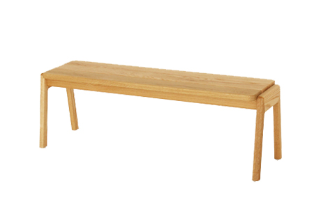 足元スッキリ、背もたれのないベンチは、空間を圧迫することなく、お部屋を広く見せます。また、前からでも後ろからでも腰掛けることができるため、使い勝手が良いことも挙げられます。