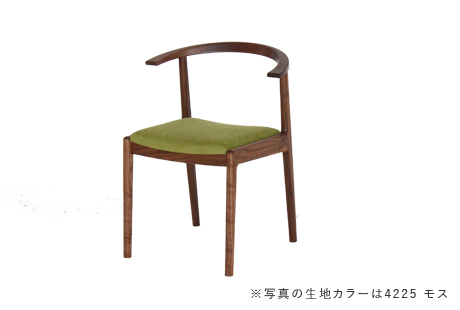 背もたれと肘乗せがフラットでスムースにつながっているため、肘や肩が自由に動かせ、椅子の上で気分に応じた体勢をとりながら過ごすことができる、ハーフアームのダイニングチェア。