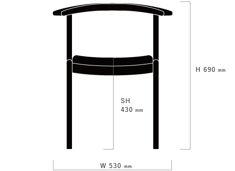 シンプルながら組む技術・削る技術が詰まった椅子です。計算された円弧の内側は3次元に削られ、心地よい腰当たり。背もたれと肘乗せがフラットでスムースにつながっているため、肘や肩が自由に動かせ、椅子の上で気分に応じた体勢をとりながら過ごせます。テーブルへの出入りもしやすいハーフアームチェアは狭いスペースにもオススメです。