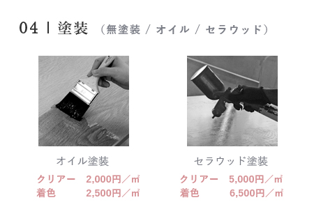 『オイル塗装』『セラウッド塗装』の2種類をご用意