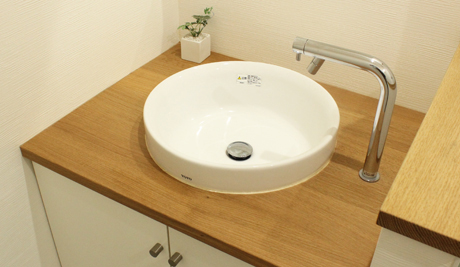 塗装は自然の風合いを活かしたオイル塗装の他、オイル塗装の質感に近く、シミや汚れ、耐熱性に優れたセラウッド塗装にも 対応。キッチン、洗面カウンター等におすすめです。