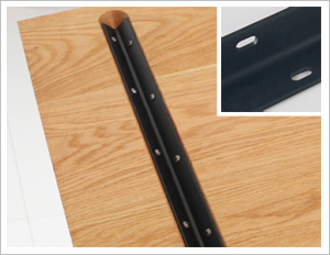 長丸のビス穴が開けられたアングルは、木の収縮を吸収できるよう計算された特注仕様。