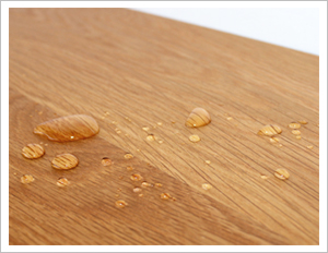 従来のウレタン塗装に比べ、無垢の質感を生かした仕上げに成功し、オイル塗装より優れた撥水・耐汚性能を有します。