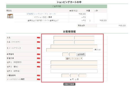 【購入手続き】ボタンをクリックし、お客様情報(お名前、フリガナ、住所、Eメール、電話番号)をご記入してください。