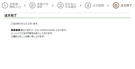 注文完了ページが表示され、自動返信メールがお客様宛てに送信されます。