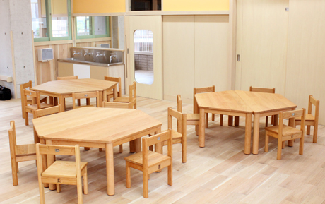 子ども用テーブル、椅子、収納棚等の納品実績がございます。