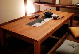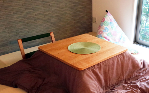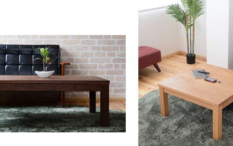 オールシーズン、モダンリビングで使える、熟練職人がつくるシンプルな本格無垢のコタツ。冬はあったか炬燵として、春から秋はリビングテーブルとして使える2way仕様。