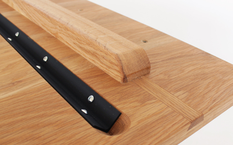 他に類を見ない天板の2重反り止め。「吸付き蟻桟」と呼ばれる伝統工法と、鉄製の埋め込み型アングルを併用しています。