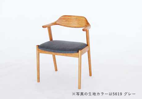 包み込むような腰当たりと、背もたれから滑らかにつながる肘掛けが特徴です。
