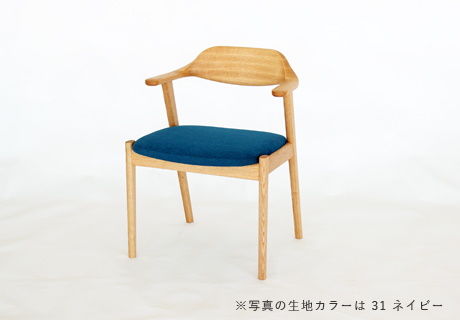 テーブルへの出入りがしやすく、椅子の上では自由な姿勢でくつろぐことができるハーフアームチェアです。