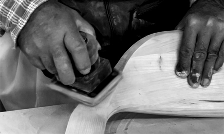 堅い無垢の木から削り出されたやわらかなカタチと、思わず撫でたくなるような滑らかな質感が魅力的なオルガチェアは、機械(マシン)による高度な加工技術と丹念な手作業から生まれています。