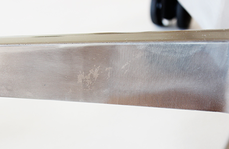形状や部位に合わせて複数の工具や研磨紙を使いわけながら、力加減を調整しながら、端部や表面を滑らかに磨きあげます。