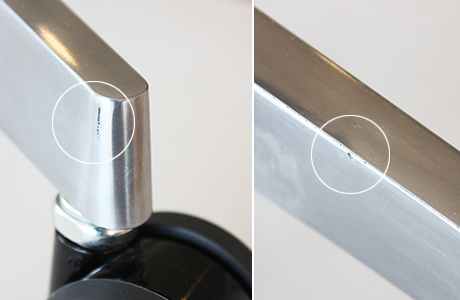 木と金属という異素材の組み合わせを、強度と安定性の求められる椅子(ワークチェア)で実現するため、それぞれの接合に高度な加工を施すことで強固な接着強度を持たせ、過酷な強度試験をクリアしています。