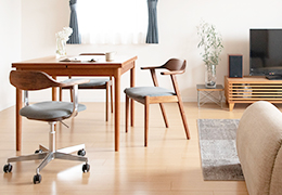 | 素 材 | 木部:チェリー無垢材 (産地:アメリカ北東部) 脚:アルミダイカスト キャスター:エラストマー製 |