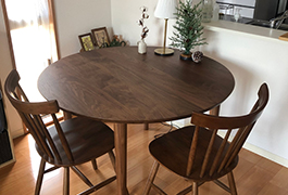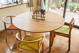 ヤクモ家具さんのテーブルは素材、デザイン、色味、価格も含め、全て理想通りでした。光の当たり具合や時間帯によってテーブルの色味も変わり、一日を通して様々なテーブルの雰囲気を楽しむことができます。(H.C様 大阪府)