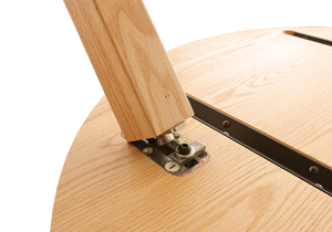 脚側の金具の凸部分を、天板側金物の穴部分に落とし込みます。