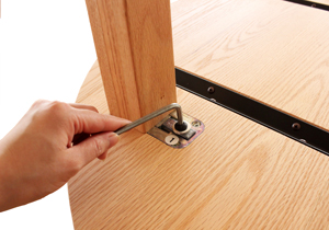 テーブルの組立(脚の取付)は、商品に同梱された六角レンチを使って行います。