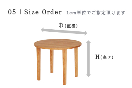 ※直径130cmを超えるものにつきましては、天板は半円形2枚を金物で連結させる仕様となります。
