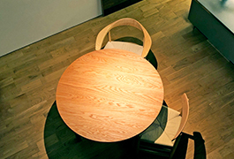円形のテーブルは座る人全員の顔が良く見えて対話もしやすいため、リビング・ダイニングの団欒の場にも相応しいカタチです。