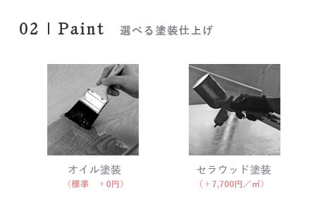 『オイル塗装』『セラウッド塗装』の2種類をご用意