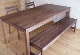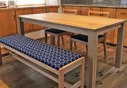 シンプルでベーシックな無垢のベンチを、基本に忠実につくりました。椅子に比べて奥行きサイズが小さなベンチは、ダイニング空間を小スペースで構成することもできます。