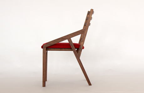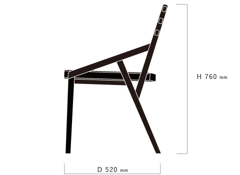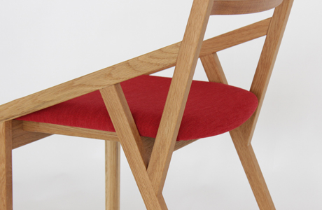 細く削ぎ落とした木材をトラスに組み上げた、構造的な魅せ場のあるダイニングチェア。軽さと強度を両立させ、立ち上がる際の手掛けや持ち運びの際の手持ちにもなる、使い勝手も考えたデザイン。